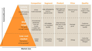 Initially, it is therefore smart to keep this segment out of the calculations for a while and in the long term, after you have started in the higher segment, to think about how you can adapt your product to better match the wishes and price level of the Indian middle segment. If you focus on the middle segment in addition to the high segment, you could triple your sales market in a short time.